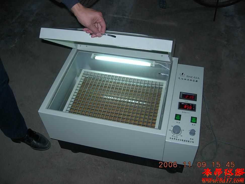 SHZ-82數(shù)顯氣浴恒溫振蕩器:溫控精確數(shù)字顯示。開設有補氧孔,恒溫工作腔補氧充分